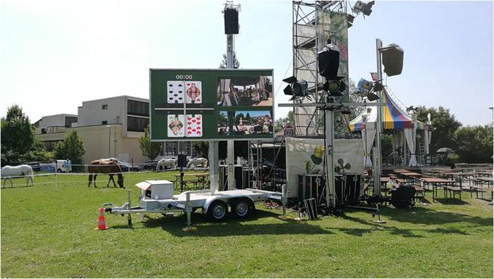 tampilan LED outdoor dibereskeun dina trailer mobile