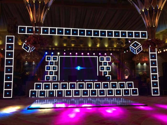 Urang Indoor p3.91mm rental dipingpin tampilan kalawan 500x500mm aluminium paeh-casting panel dipingpin ieu ngan dipaké pikeun konsér jeung acara kawinan di India. Ukuran total tampilan anu dipimpin nyaéta 150 panél (37.5sqm)